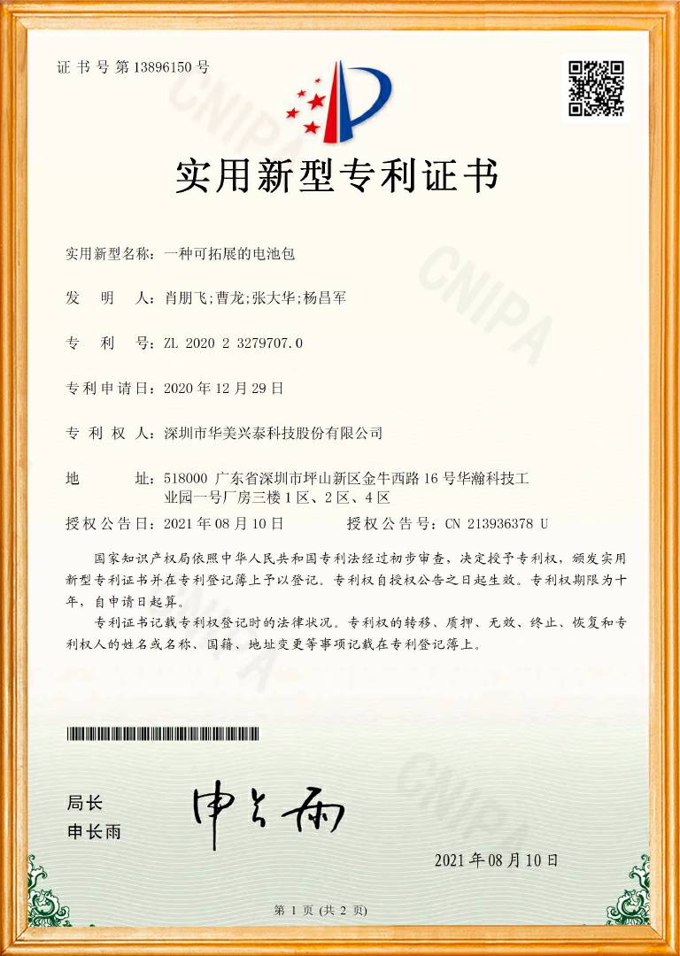 可拓展电池包专利