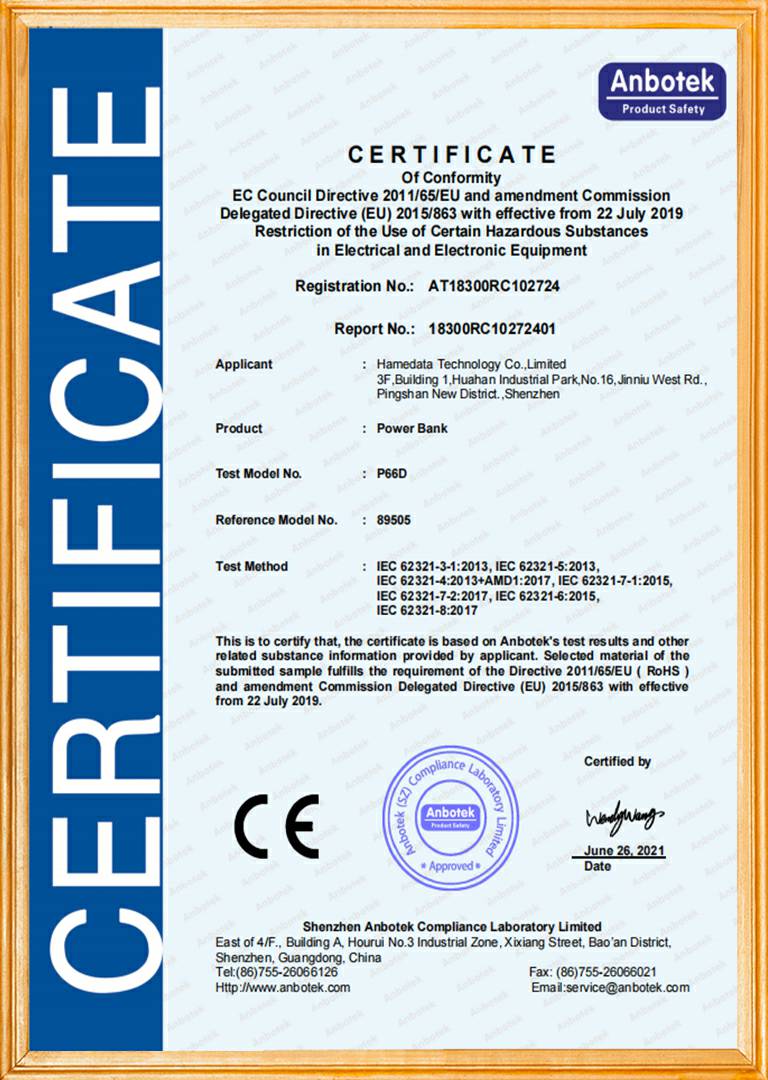 移动电源产品品质证书1