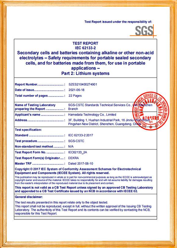智能电池组品质证书1