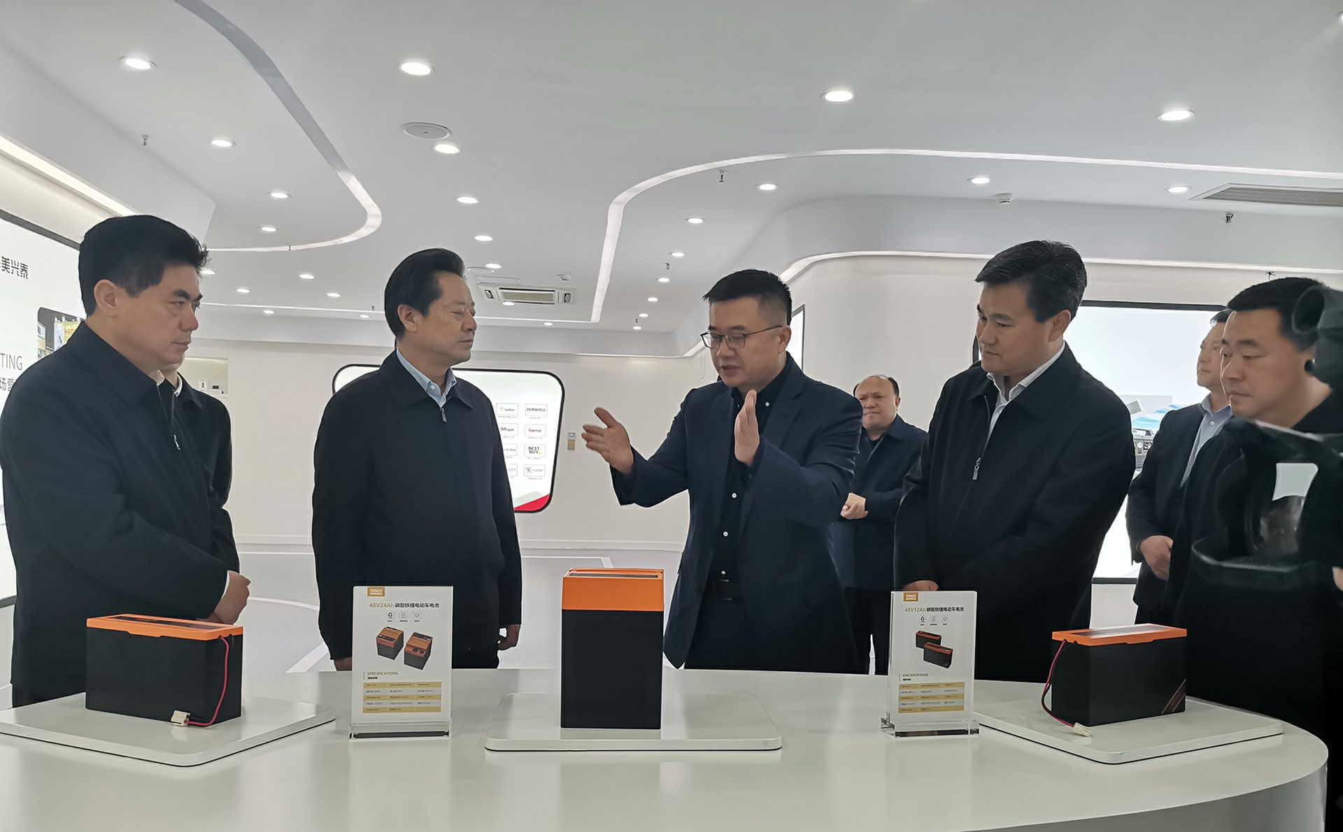 在董事长杨昌军的带领下,州委书记虢正贵一行参观了开云体育-开云(中国)一站式服务平台产品展示厅以及泰和美新能源电芯自动化生产线,详细了解了泰和美电动车电池产品市场规模及市场前景。